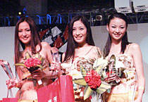 “中國內衣、沙灘裝模特選拔大賽”在上海決出冠、亞、季軍及十佳模特,冠軍由來自天津的金姝懿(中)奪得,來自云南的馬茹莉(右)和來自北京的郇璐璐(左)分別屈居亞軍和第三名。中新社記者 潘索菲 攝
