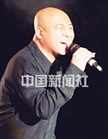 2000年中國(guó)歌曲排行榜頒獎(jiǎng)晚會(huì)二十三日晚在北京舉行,中國(guó)著名的“零點(diǎn)樂(lè)隊(duì)”榜上有名。圖為該樂(lè)隊(duì)周小歐在現(xiàn)場(chǎng)演唱。中新社記者 錢興強(qiáng) 攝