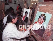 圖:藏族學(xué)生進(jìn)行油畫創(chuàng)作