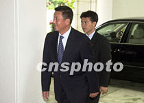澳門特區行政長官何厚鏵五月九日出席香港特區行政長官董建華舉辦的歡迎江澤民主席的午宴。中新社傳真 任海霞 攝