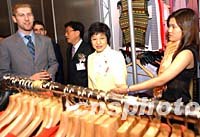 「香港時裝節春夏系列2002」10日在會展中心舉行,香港經濟局長李淑儀(中)等嘉賓主持開幕典禮后參觀展場。今屆共有來自19個國家及地區的506家參展商參與,規模龐大。中新社圖 洪少葵 攝