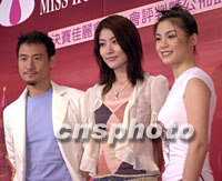 歌星張學(xué)友、陳慧琳及應(yīng)屆華裔小姐廖碧兒11日在香港出席港姐決賽十二位佳麗會(huì)晤大會(huì)評(píng)判記者會(huì),他們將于15日晚舉行的決賽為大會(huì)作表演嘉賓。中新社圖 鄧慶樂(lè) 攝