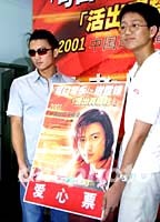 多圖:謝霆鋒巡回演唱風下周刮到上海 2001年07月20日 15:47 ![]() 香港歌手謝霆鋒七月十九日在上海為其演唱會做前期推廣。“可口可樂謝霆鋒活出真精彩2001中國巡回演唱會”將于七月二十八日在可容納八萬人的上海體育場舉行。謝霆鋒希望屆時更多的歌迷能了解他、接近他。中新社記者 潘索菲 攝 ![]() 新天王謝霆鋒十九日在上海向上海慈善基金會慈善助學的受助學生代表贈送本月二十八日在此間舉行的“可口可樂謝霆鋒活出真精彩演唱會”的門票。中新社記者 潘索菲 攝