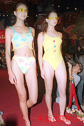 2000歐美內衣及泳裝表演28日在香港舉行,模特展示活潑艷麗的最新泳裝。中新社傳真鄧慶樂攝