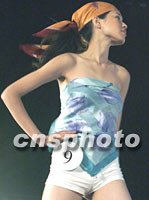 戴安娜2001世界精英模特大賽中國(guó)預(yù)選賽暨金沙灘模特大賽十日在青島舉行。圖為選手進(jìn)行絲巾創(chuàng)意設(shè)計(jì)比賽。中新社記者 錢(qián)興強(qiáng) 攝
