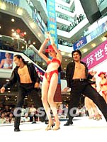 身著歐迪芬內(nèi)衣的女模特近日在北京東安市場(chǎng)的內(nèi)衣展示會(huì)上與男模隨著歡快的樂(lè)曲翩翩起舞。中新社記者 史利 攝