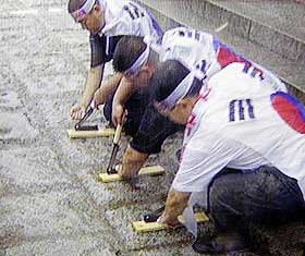 圖文:韓國(guó)20人斬?cái)嗍种缚棺h小泉參拜靖國(guó)神社 2001年08月13日 15:06 ![]() 法新/圖 中新網(wǎng)北京8月13日消息:韓國(guó)漢城二十人公開(kāi)斬?cái)嗍种福匝棺h日本首相小泉純一郎參拜靖國(guó)神社。 據(jù)韓國(guó)電視臺(tái)報(bào)道,二十名男子在漢城獨(dú)立門(mén)前抗議,高叫口號(hào),指責(zé)小泉純一郎到供奉戰(zhàn)犯的靖國(guó)神社參拜。男子接著拿出長(zhǎng)柄大鐮刀,斬?cái)辔仓缚棺h。 有目擊者表示,該批男子較早時(shí)被阻止在日本大使館前示威。警方暫時(shí)沒(méi)有評(píng)論事件。 |