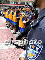 九月十一日,廣州警方在天河宏城廣場宣布對王德臣等二十名盜搶機動車嫌疑人的刑事拘留。中新社記者 陳文 攝
