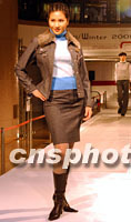 香港名模李嘉慧11日為名牌時裝i BLUES 及MARINA RINALDI,演示2001最新秋冬系列服飾。中新社圖 洪少葵 攝