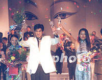 2001新絲路中國模特大賽可賽杯北京分賽區(qū)決賽,十一日在北京舉行,男選手周雙健和女選手賈妮妮分別榮獲大賽冠軍。中新社記者 錢興強(qiáng) 攝