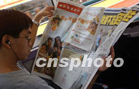 美國遭受恐怖襲擊后,許多香港市民在巴士上看報紙關注事態發展。中新社記者 任海霞 攝