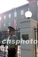 圖文:美國駐華使館降半旗致哀 工作一切照常 2001年09月12日 15:37 ![]() 美國駐中國大使館十二日清晨降半旗,對在美國紐約與華盛頓恐怖事件中的罹難者表示哀悼。中新社記者 毛建軍 攝 ![]() 美國駐中國大使館十二日清晨降半旗,對在美國紐約與華盛頓恐怖事件中的罹難者表示哀悼。中新社記者 毛建軍 攝