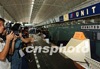 圖文:美加機場關閉 港赴美航機全面停飛 2001年09月12日 16:42 ![]() 部分因美國紐約世界貿易中心等地恐怖襲擊而滯留香港國際機場的旅客,12日中午焦慮的在候機室屏幕前,關注事態發展。中新社圖 洪少葵 攝 ![]() 美國世界貿易中心的兩棟大廈遭受飛機撞擊爆炸的恐怖事件后,美國各地機場首次全線關閉,往來香港的至少14班航機12日受到影響取消。大批香港傳媒聚集在香港國際機場的美國聯合航空柜臺前,關注事態發展。中新社圖 洪少葵 攝