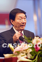 ![]() 中國國家發展計劃委員會主任曾培炎十九日上午在華商大會中國經濟論壇上作題為“乘十五計劃東風奏西部開發凱歌”的演講。中新社圖 李剛 攝 ![]() 中國外經貿部部長石廣生十九日上午在中國經濟論壇的演講上做題為“開放的中國,美好的未來”的演講。中新社圖 李剛 攝