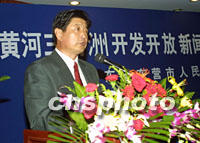 山東省東營市借華商大會之機樹自身形象,在華商大會舉辦期間舉行新聞發布會,劉國信市長向采訪華商大會的媒體記者和部分華商大會代表介紹東營市的情況。中新社記者 史利 攝