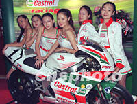 2001年亞洲公路摩托車錦標賽日前在廣東珠海國際賽車場舉行,英國著名的嘉實多公司出巨資贊助在中國的此項賽事,并選用靚女為其做品牌宣傳。中新社記者 趙振清 攝
