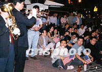 哀樂低回,燭光搖曳。九月十九日晚,以福建僑團為主的近三百位華人華僑來到紐約華埠林則徐廣場,默默悼念“九一一”死難者。中新社記者 郭健 攝