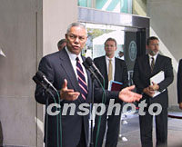 美國國務卿鮑威爾二十一日在國務院大樓對媒體說,對恐怖主義,美國要進行一場很長的軍事行動。中新社圖 徐德金 攝