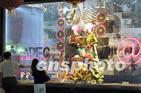 上海各主要商廈各顯絕招,精心打扮櫥窗迎接十月即將舉行的APEC會議。圖為南京路上的櫥窗美景吸引路人視線。中新社記者 潘索菲 攝