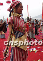 2001中國青島時(shí)裝周暨服裝服飾博覽會三十日在青島開幕。圖為在開幕式上身穿各式服裝的模特進(jìn)行展示。中新社記者 錢興強(qiáng) 攝