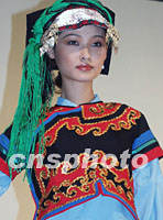 2001中國青島時裝周暨服裝服飾博覽會正在青島舉行。圖為模特展示少數(shù)民族服飾作品。中新社記者 錢興強(qiáng) 攝
