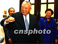 民調(diào)顯示施政報告公布后董建華支持度上升 2001年10月11日 21:07 ![]() 香港特區(qū)行政長官董建華,10月11日在香港立法會就他昨日所做的2001年施政報告接受議員提問。中新社記者 任晨鳴 攝 ![]() 香港立法會主席范徐麗泰,10月11日陪同行政長官董建華到立法會回答議員關于施政報告的提問。中新社記者 任晨鳴 攝