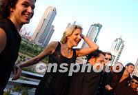 加拿大爵士樂隊樂手十三日在上海浦東陸家嘴金融貿易區游覽,他們將在APEC會議期間演奏,為這個國際盛會的召開獻藝助興。中新社記者 王瑤 攝