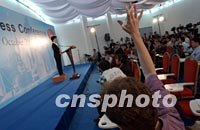 2001年上海APEC會議中國籌委會秘書處發(fā)言人章啟月,十四日在新聞中心就2001年APEC會議總體安排問題舉行新聞發(fā)布會,中外記者就大會議題、安全保衛(wèi)等問題踴躍提問。中新社記者 王瑤 攝