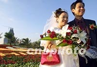一對青年擇上海舉辦十月APEC會議的吉日喜結良緣,這將成為他們記憶中最為浪漫的一頁。中新社圖 劉殊瑾 攝