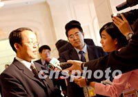 2001年上海APEC非正式高官會(huì)主席王光亞,十五日中午在上海國(guó)際會(huì)議中心接受記者采訪(fǎng)時(shí)表示:反恐怖是全世界都要關(guān)注的問(wèn)題。中新社記者 王瑤 攝