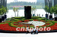 上海浦東世紀公園裝飾巨大的鮮花時鐘,迎接十月APEC會議部長級佳賓光臨。中新社記者 賈國榮 攝