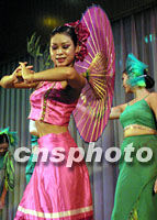 作為上海APEC指定旅游景點(diǎn)的江蘇周莊的姑娘們,十六日以其美妙的歌舞迎接采訪APEC會議的各國記者。中新社記者 潘索菲 攝