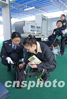 17日上海國際會議中心的一位女警員仔細查看記者的隨身物品,隨著美國總統布什等各國要客的陸續抵達,與APEC會議相關的安全檢查更加嚴密緊張。中新社記者 王瑤 攝