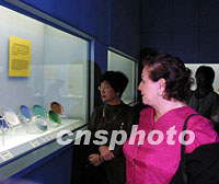 APEC雙部長會議十月十七日在上海開幕。圖為菲律賓副總統兼外長的夫人等貴賓參觀上海博物館的瓷器精品。中新社記者 潘索菲 攝