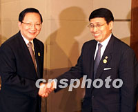 中國外交部長唐家璇十七日在上海國際會議中心會見前來參加亞太經(jīng)合組織(APEC)會議的印尼外長哈桑·維拉尤達(dá)。中新社記者 毛建軍 攝