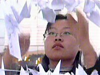 中國(guó)東北大學(xué)一名女生十七日在校園里掛起潔白的千紙鶴,悼念日前逝世的前東北大學(xué)校長(zhǎng)張學(xué)良。