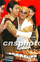 臺灣偶像派明星林志穎15日出席《齊天大圣孫悟空》開鏡拜神儀式,正巧是他生日,受到眾明星的祝賀。中新社圖 洪少葵 攝