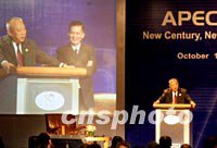 香港特別行政區(qū)行政長(zhǎng)官董建華十八日出席亞太經(jīng)合組織工商領(lǐng)導(dǎo)人峰會(huì)(APEC CEO),并發(fā)表演講。中新社記者 毛建軍 攝