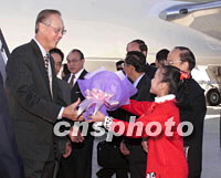 10月18日,前來參加2001年亞太經(jīng)合組織領(lǐng)導(dǎo)人非正式會議的各經(jīng)濟體領(lǐng)導(dǎo)人陸續(xù)抵達上海。這是新加坡總理吳作棟抵達機場后接受獻花。中新社圖