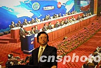 十月十八日,中國外交部新聞司司長朱邦造主持APEC雙部長聯合記者招待會。中新社記者 潘索菲 攝