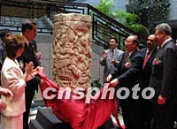 墨西哥總統(tǒng)文森特·福克斯與上海市市長(zhǎng)徐匡迪十九日在上海博物館為墨西哥瑪雅文明珍品展揭幕。中新社記者 潘索菲 攝