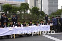 二十日在上海浦東陸家嘴金融貿(mào)易區(qū)上班的職員,必須在警察設(shè)立的臨時專用臺前登記,以確保APEC領(lǐng)導(dǎo)人峰會的安全。中新社記者 潘索菲 攝