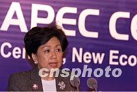 中國證監會副主席史美倫二十日在上海舉行的亞太經合組織工商領導人峰會分組會上發表演講,談亞洲的資本市場及新經濟的資本來源。中新社記者 毛建軍 攝