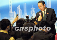 APEC會議籌委會秘書長王光亞二十日晚在上海國際新聞中心介紹領導人第一天會議情況時說,會議認真聽取了APEC工商咨詢理事會的建議,并將于二十一日下午簽署領導人宣言和反恐聲明。中新社圖 劉殊瑾 攝