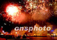 二十日晚,色彩繽紛的煙花映紅上海浦江兩岸,祝賀APEC高峰會舉行。中新社記者 毛建軍 攝