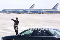 9天保障163架專包機(jī) 上海機(jī)場創(chuàng)中國民航之最 2001年10月20日 22:42 ![]() 一名警察在上海浦東機(jī)場指揮車隊(duì),他的身后是美國“空軍一號”專機(jī)。中新社圖 劉殊瑾 攝