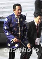 10月21日上午,出席2001年亞太經(jīng)合組織領(lǐng)導(dǎo)人非正式會(huì)議的文萊蘇丹博爾基亞抵達(dá)上海科技館。中新社圖