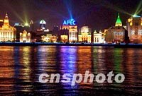 十月二十一日夜,上海外灘燈火通明映照浦江,APEC峰會在此間的上海科技館落幕。中新社記者 賈國榮 攝