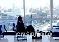 一名出席上海十月APEC會議的工商界人士,坐鎮于浦東的明亮大廈中打手機電話通信息。日前閉幕的APEC會議為亞太地區拓展了商機。中新社記者 賈國榮 攝