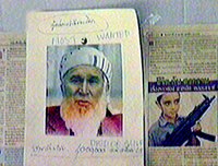 泰國一穆斯林組織日前懸賞百萬通緝美國總統布什,以示對美軍打擊阿富汗的強烈抗議。圖為通緝照片中的布什和手持武器的“圣戰”小戰士。
